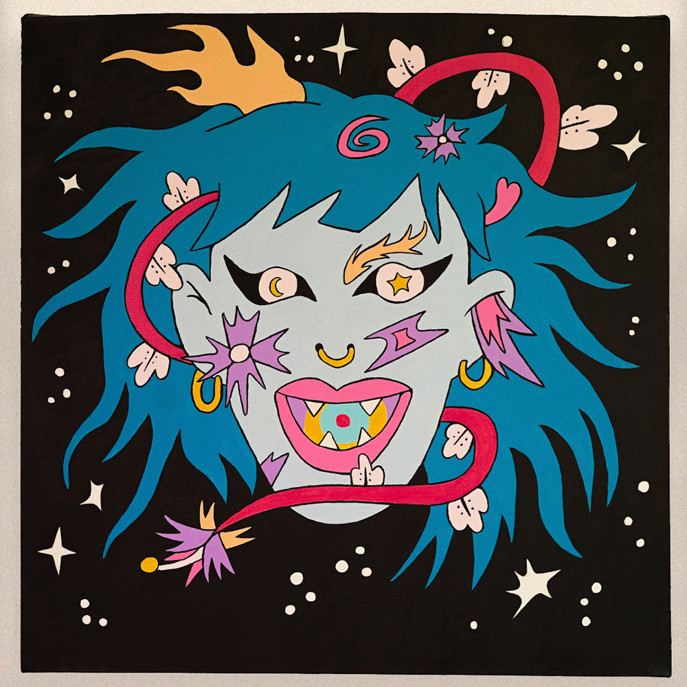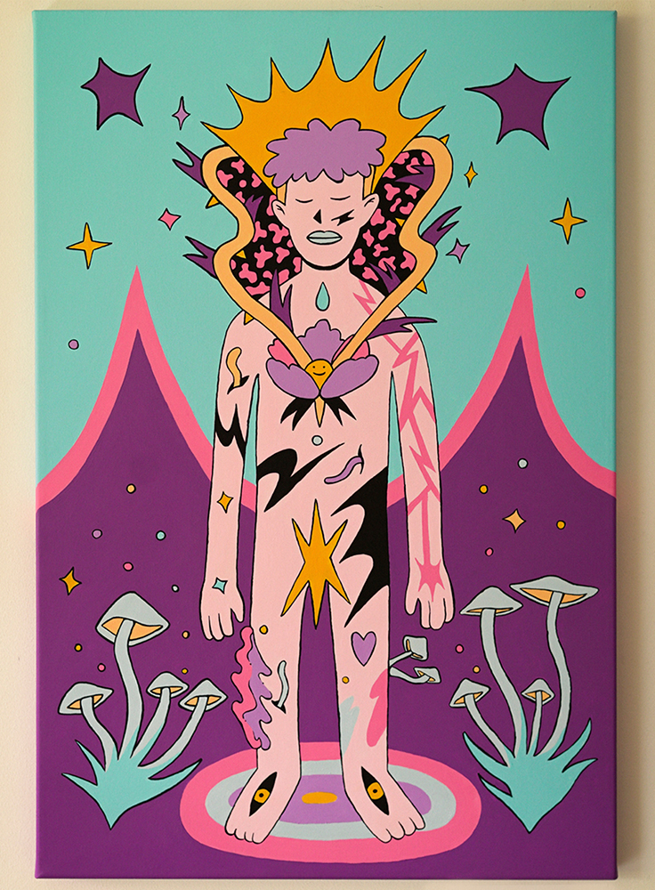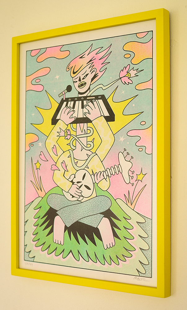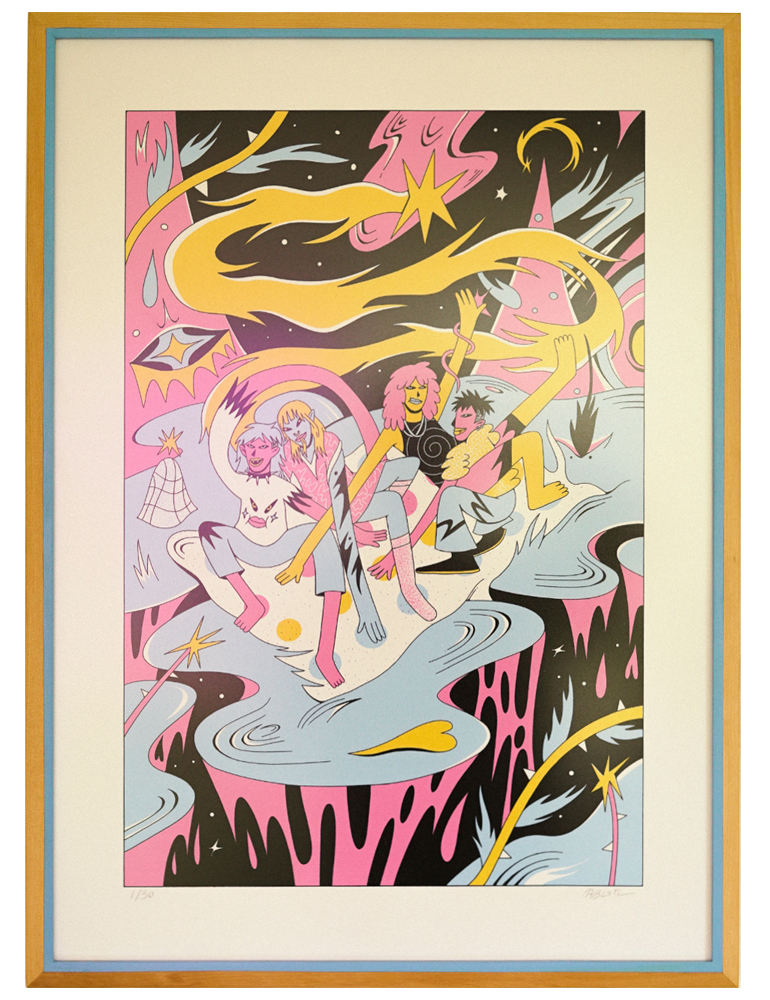 “Pide un deseo” was my first solo exhibition. It happened in 2022, located in Santiago, Chile, at @eyesup since November 4th to November 25th. I showed 11 different artworks, most of them were acrylic on canvas, but also a couple of risographs and one screen print drawing. Below, you can see some photos of the inauguration and of course, the paintings.